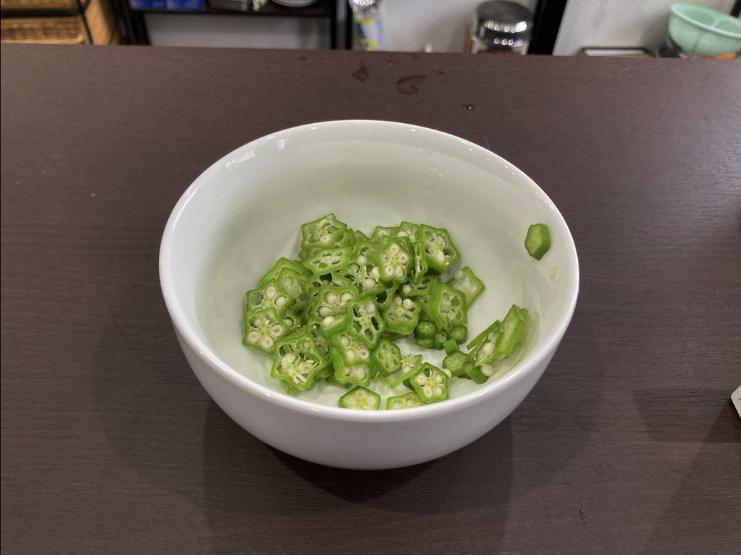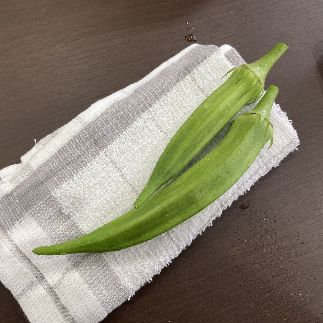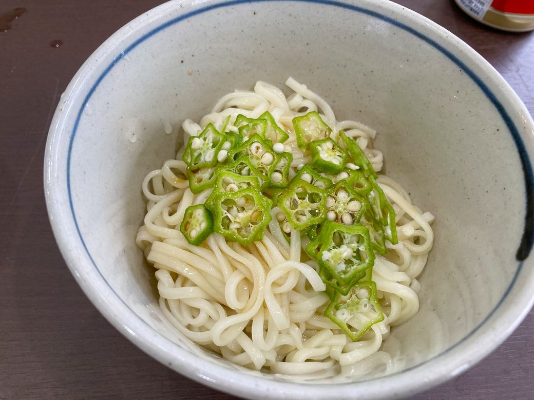日常 2025/9/12 オクラの初収穫 会社のお庭で育てていたオクラがようやく食べられるようになりました。 朝採れオクラです。フレッシュすぎて触ると棘が鋭くて痛いです。 薄く切ってお昼のうどんの薬味にしてみました。適度に香りと粘り気があって美味しかったです。買ってきたオクラもおいしいですが、ちょっと特別な感じがして良いですね。 ハラペーニョも食べ頃だと思うので、次はハラペーニョうどんです。収穫は楽しいですね。