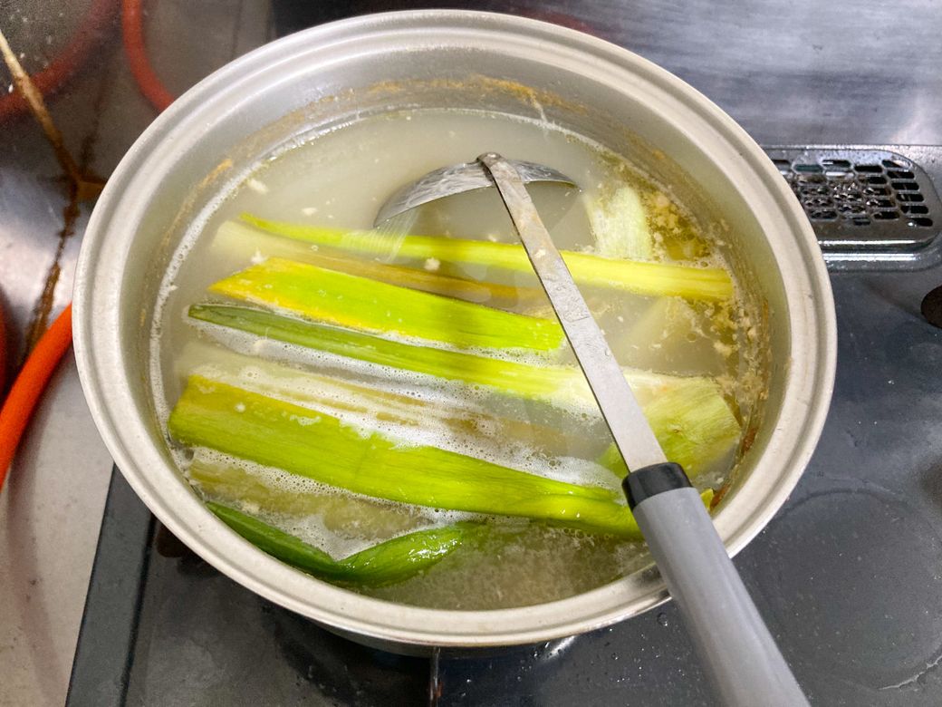 食べ終えた骨はきれいに洗って、鶏白湯スープにしました。