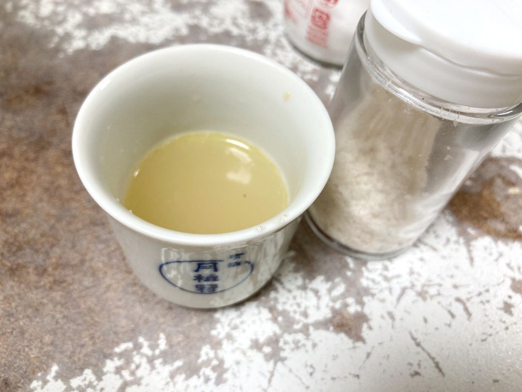 手羽先に片栗粉をまぶしたらしばらく置いて落ちつかせます。