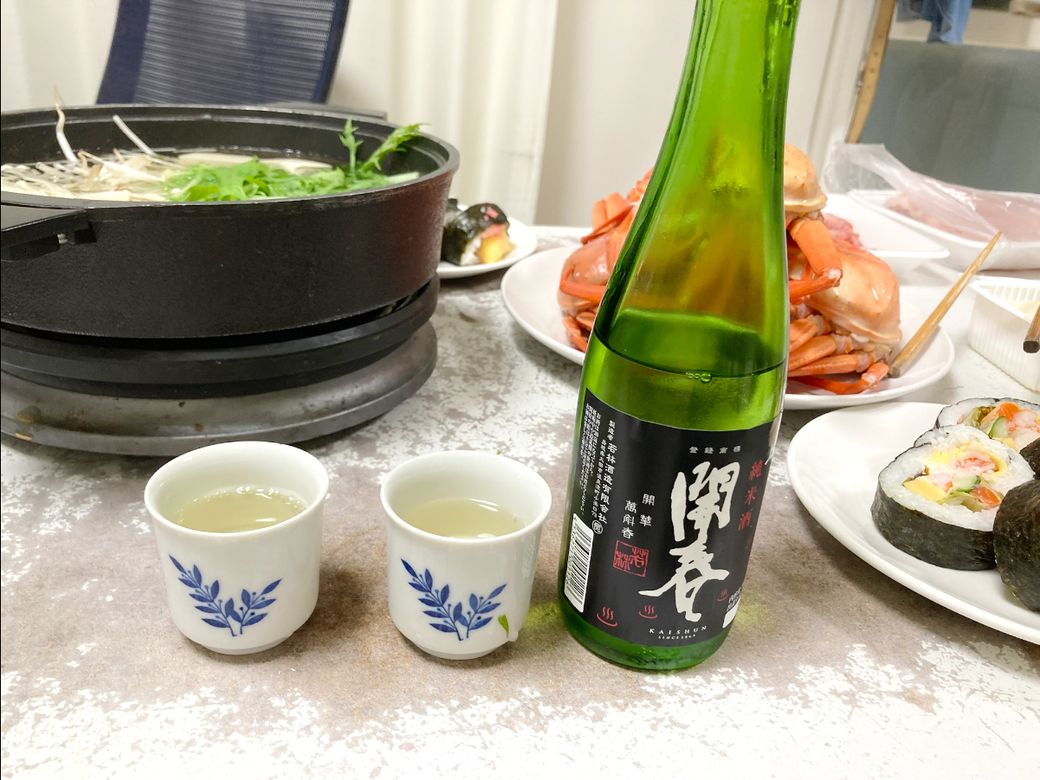今日はノンアルではなく、日本酒「開春」です。