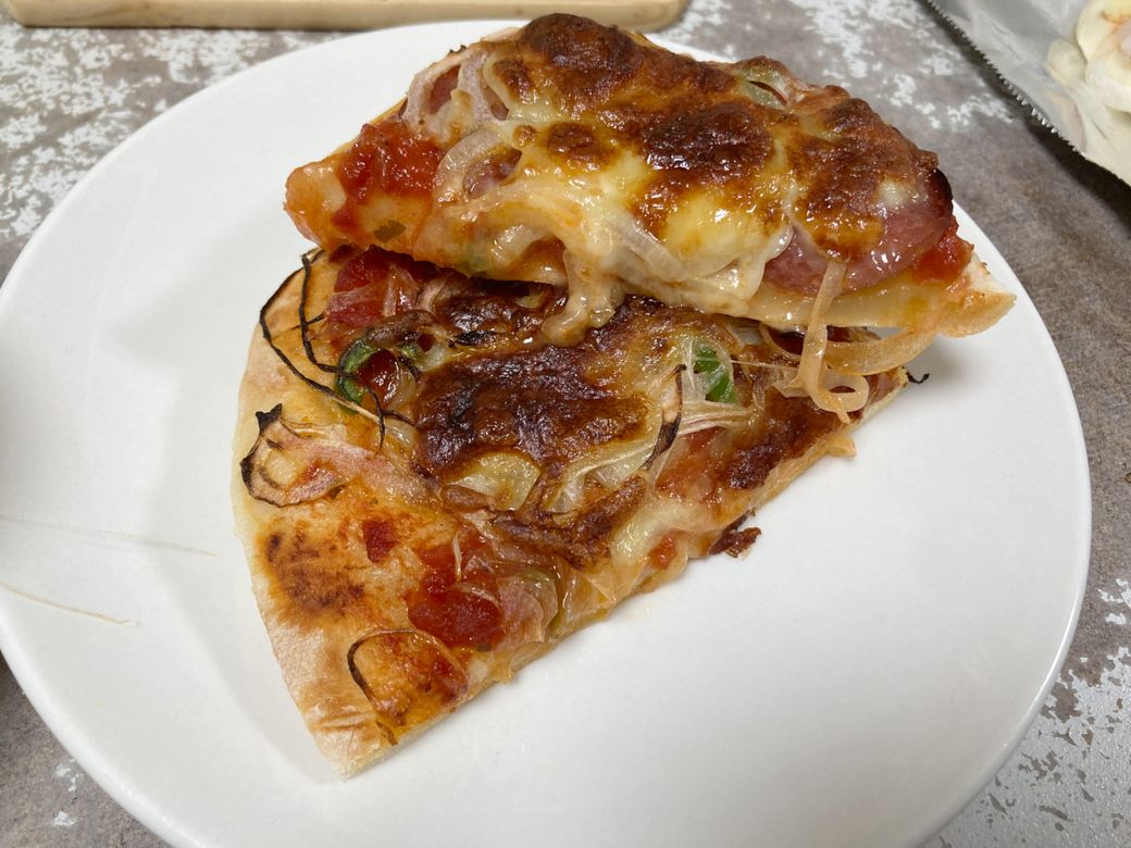 文章で書くと長々としてしまうのですが、やってみるとどうってことありません。 発酵時間(1時間くらい)があればいいだけですし、麺棒で伸ばすとゆー手抜きも覚えてしまったので、お手軽晩御飯の一つになっています。